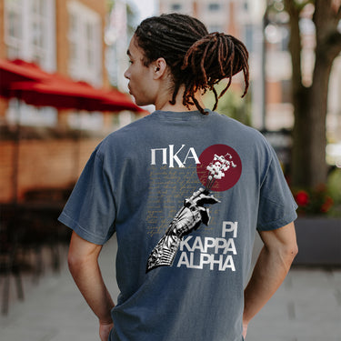 Celebrate Pi Kappa Alpha's rich history with this exclusive Pike Merch t-shirt. The comfort colors tee features a bold "1868 PIKE" text on the front, while the back showcases an eye-catching design with PIKE letters, the lily of the valley, and the handwritten text of the preamble transcribed by the Founders. Don't miss your chance to own this unique piece of Pi Kappa Alpha memorabilia!
